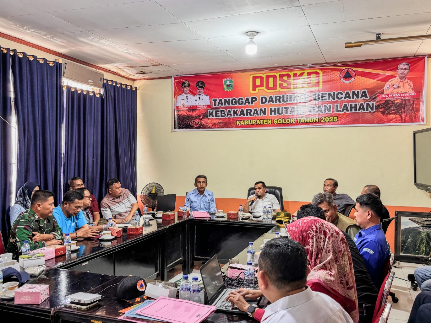 Rakor ini menghadirkan lintas instansi dari BPBD Propinsi Sumbar, BPBD Kabupaten, BMKG, Dinas Kehutanan, TNI, Polri, hingga unsur pimpinan daerah.