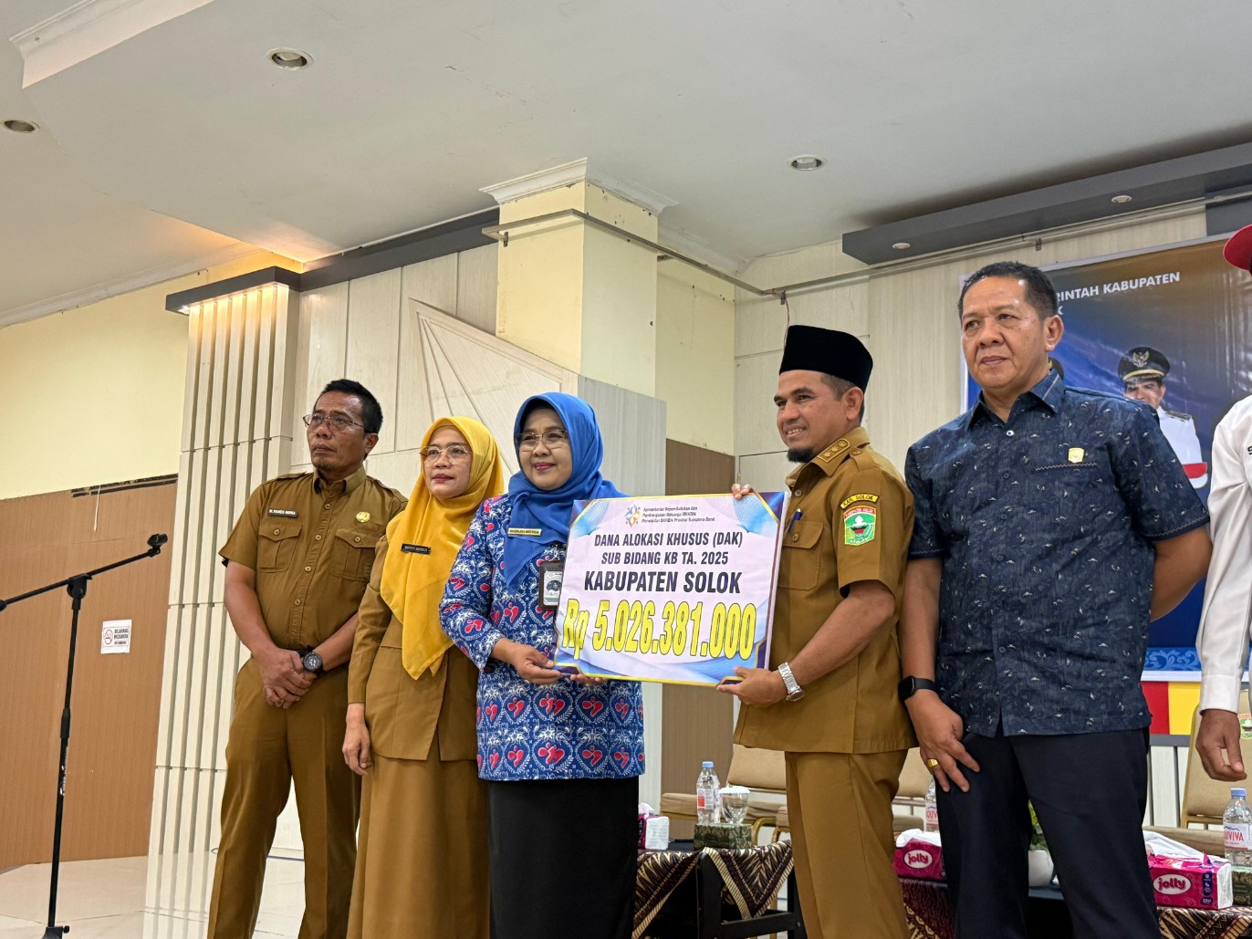 Rakor ini juga diisi dengan penyerahan Dana Alokasi Khusus Sub Bidang KB Tahun Anggaran 2025 senilai Rp 5.026.381.000,- kepada Pemerintah Kabupaten Solok.