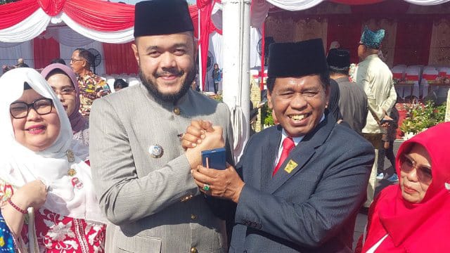 Andalas Time,Padang – Peringatan Hari Ulang Tahun (HUT) ke 80 RI jadi saksi bisu “salam keakraban” Wakil Ketua DPRD Kota Padang Jupri dengan Wako Fadly Amran, di Tugu Apeksi Balaikota Padang, Ahad, 17 Agustus 2025.