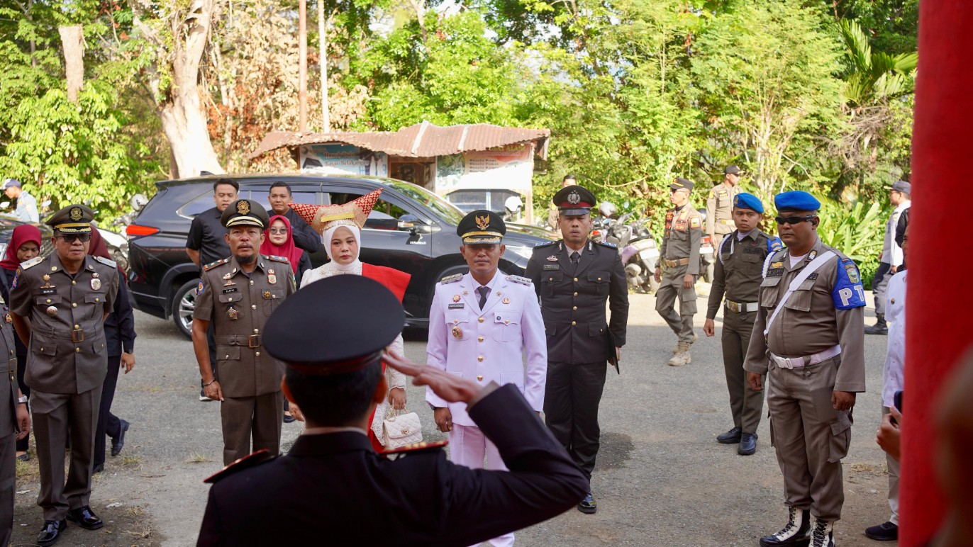 Dalam perjalanan menuju aula, tercipta momen unik dan penuh semangat, ketika Bupati Solok beserta tamu undangan ikut larut dalam yel-yel bersama anggota Paskibraka. Kehangatan dan keceriaan tersebut semakin menambah semarak suasana peringatan hari kemerdekaan RI ke 80 di Kabupaten Solok.