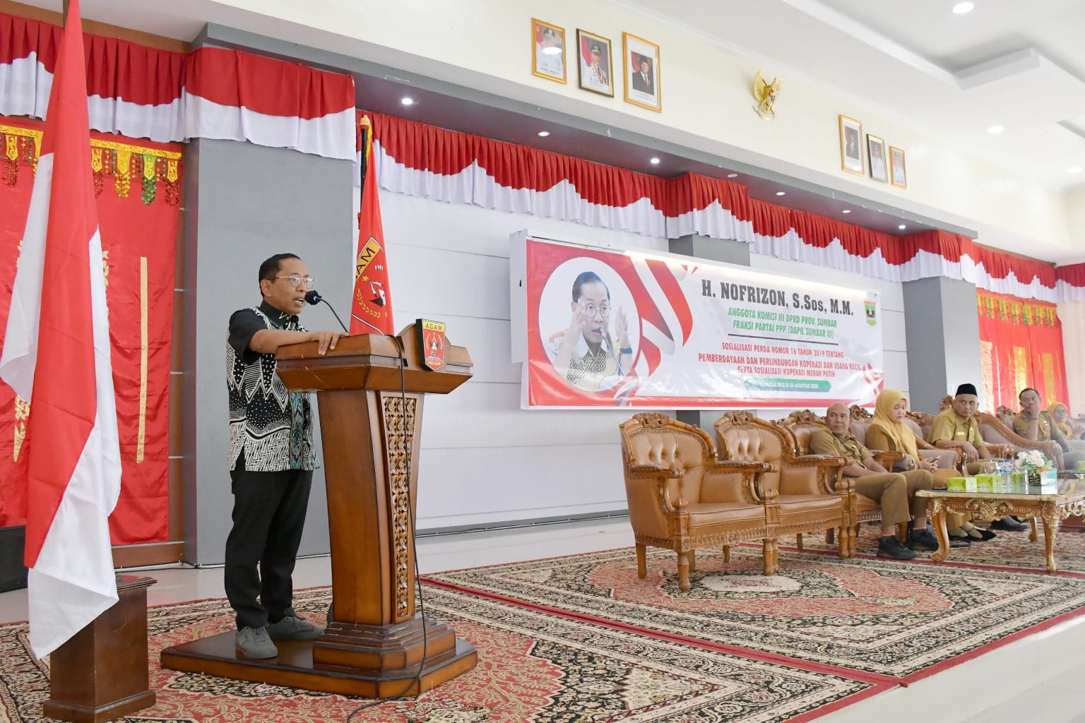 Andalas Time,Lubukbasung- Dukung optimal program pemerintah pusat dalam pengembangan kegiatan perekonomian, khususnya pendirian Koperasi Merah Putih, H.Nofrizon,S,Sos, MM, Anggota Komisi III DPRD Sumbar, gelar sosialisasi koperasi dan usaha kecil di Balairung Kediaman Resmi Bupati Agam, Senin, (25/8).