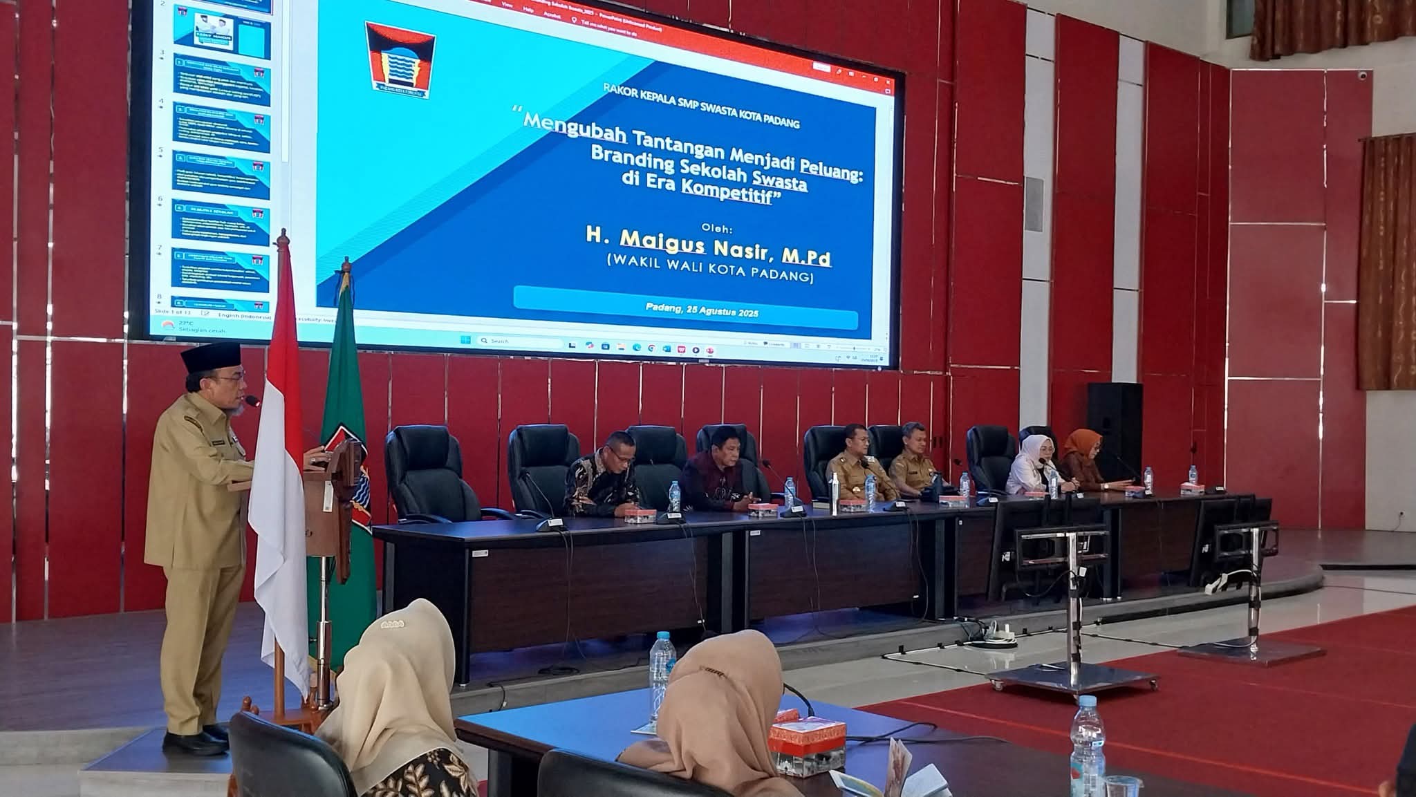 Andalas Time,Padang – Pemerintah Kota Padang menggelar Rapat Koordinasi (Rakor) Kepala Sekolah dan Wakil Kurikulum SMP Swasta se-Kota Padang Tahun 2025, Senin (25/8) di Gedung Pertemuan Bagindo Aziz Chan, Balaikota Aia Pacah.