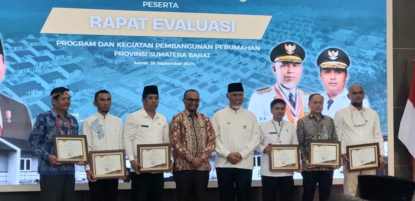 Penghargaan itu diserahkan langsung oleh Direktur Jenderal Perumahan Perdesaan KemenPKP, Imran, yang didampingi oleh Gubernur Sumatera Barat, Mahyeldi Ansharullah, dalam rapat evaluasi program pembangunan perumahan di Auditorium Gubernur Sumbar, Jumat (26/9/2025).