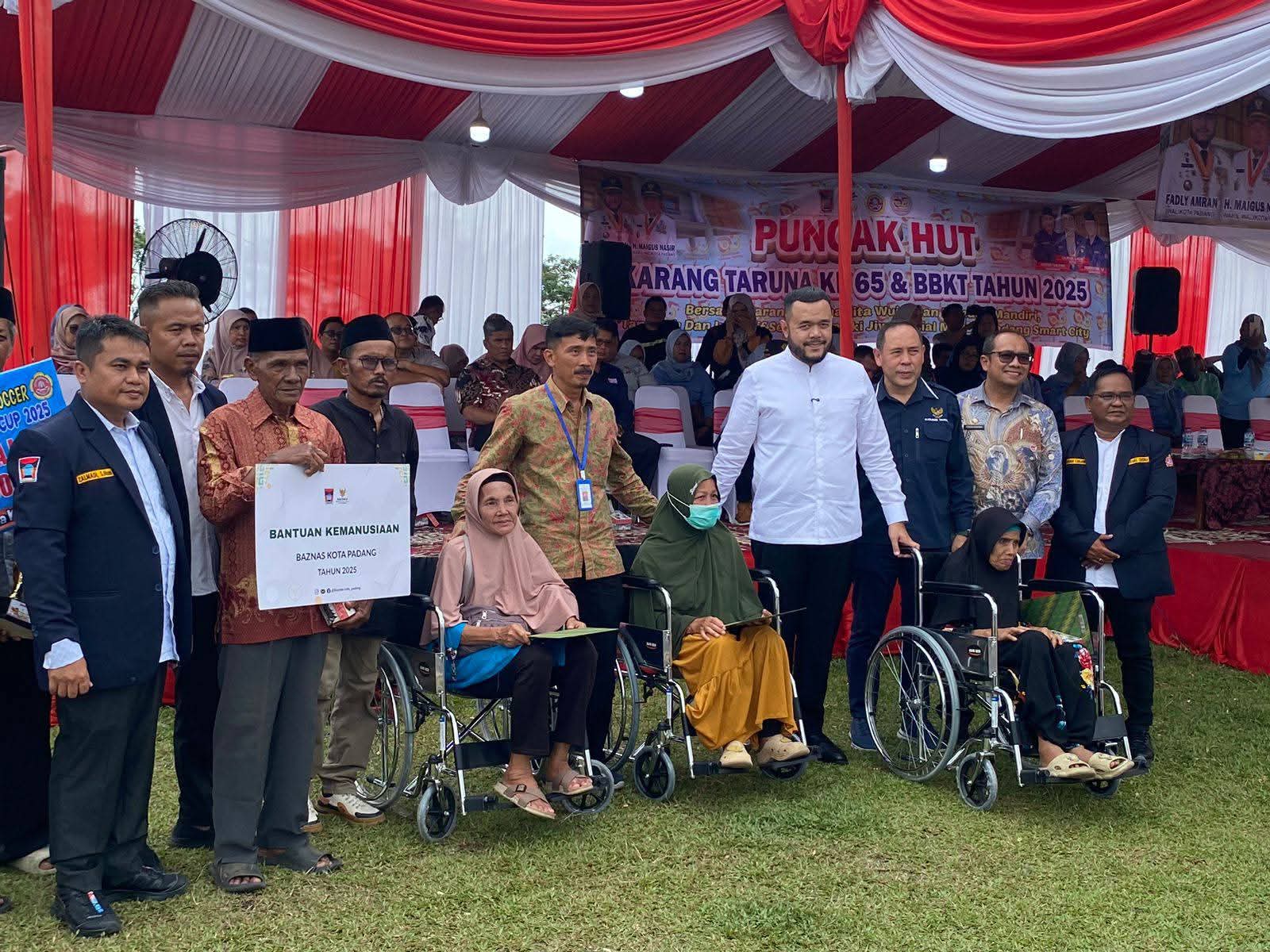 Peringatan HUT Karang Taruna ke-65 tahun ini juga dirangkaikan dengan penyerahan berbagai bantuan sosial, di antaranya kursi roda dari Kepala Balai Besar Pendidikan dan Pelatihan Kesejahteraan Sosial (BBPPKS) Padang, kacamata untuk warga yang membutuhkan, serta becak motor dari BAZNAS Kota Padang.