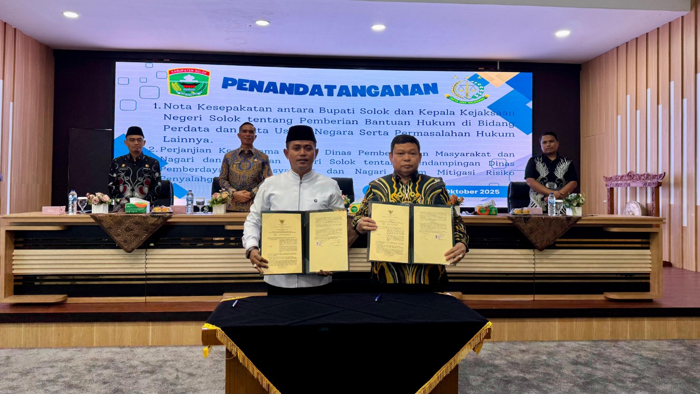 Melalui penandatanganan ini, Pemerintah Kabupaten Solok bersama Kejaksaan Negeri Solok berkomitmen memperkuat sinergi dan menghadirkan tata kelola pemerintahan yang transparan, bersih, serta berpihak pada kepentingan masyarakat.(**)
