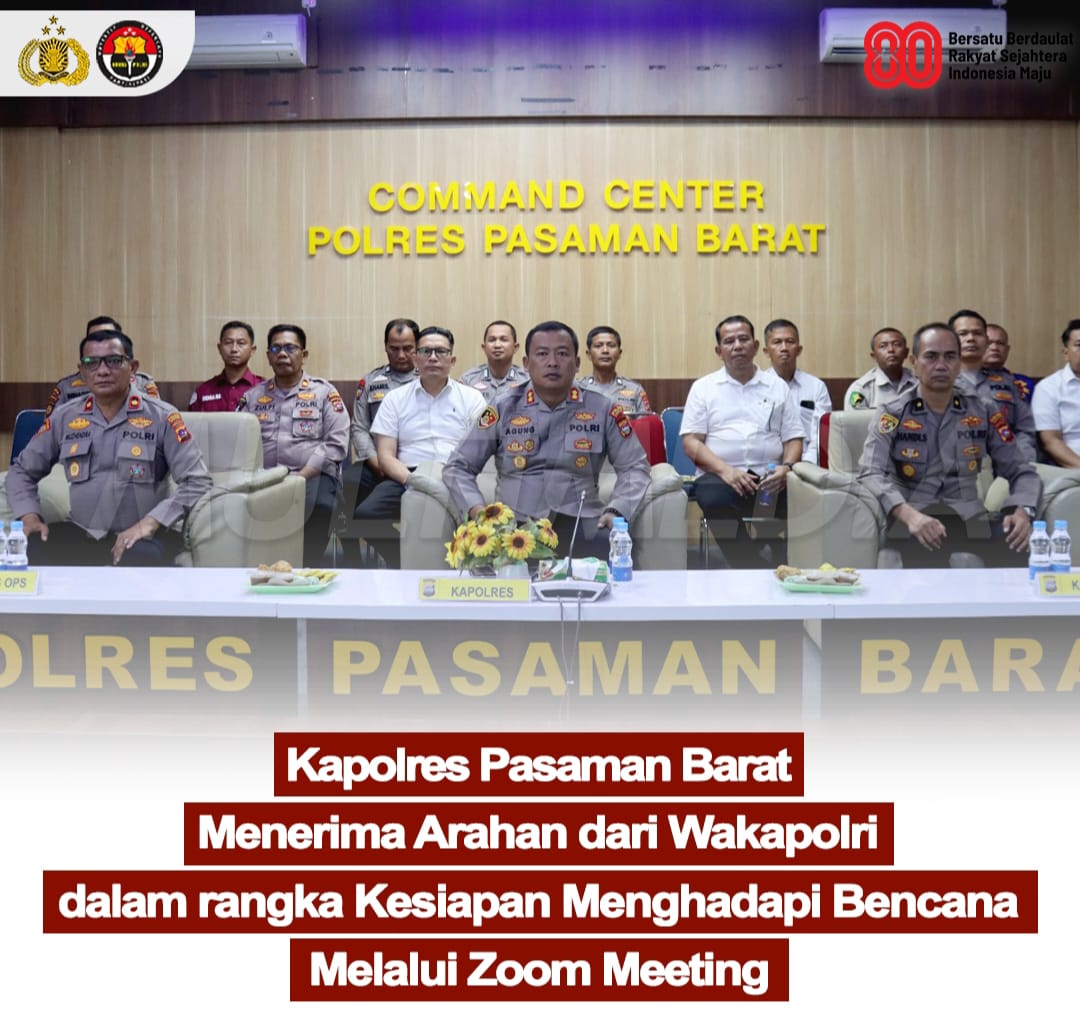 Andalas Time,Pasbar – Kapolres Pasaman Barat AKBP Agung Tribawanto, S.I.K., mengikuti arahan dari Wakapolri melalui Zoom Meeting pada Rabu (29/10/2025) siang. Pertemuan virtual ini membahas kesiapsiagaan dalam menghadapi potensi bencana alam di wilayah Pasaman Barat.