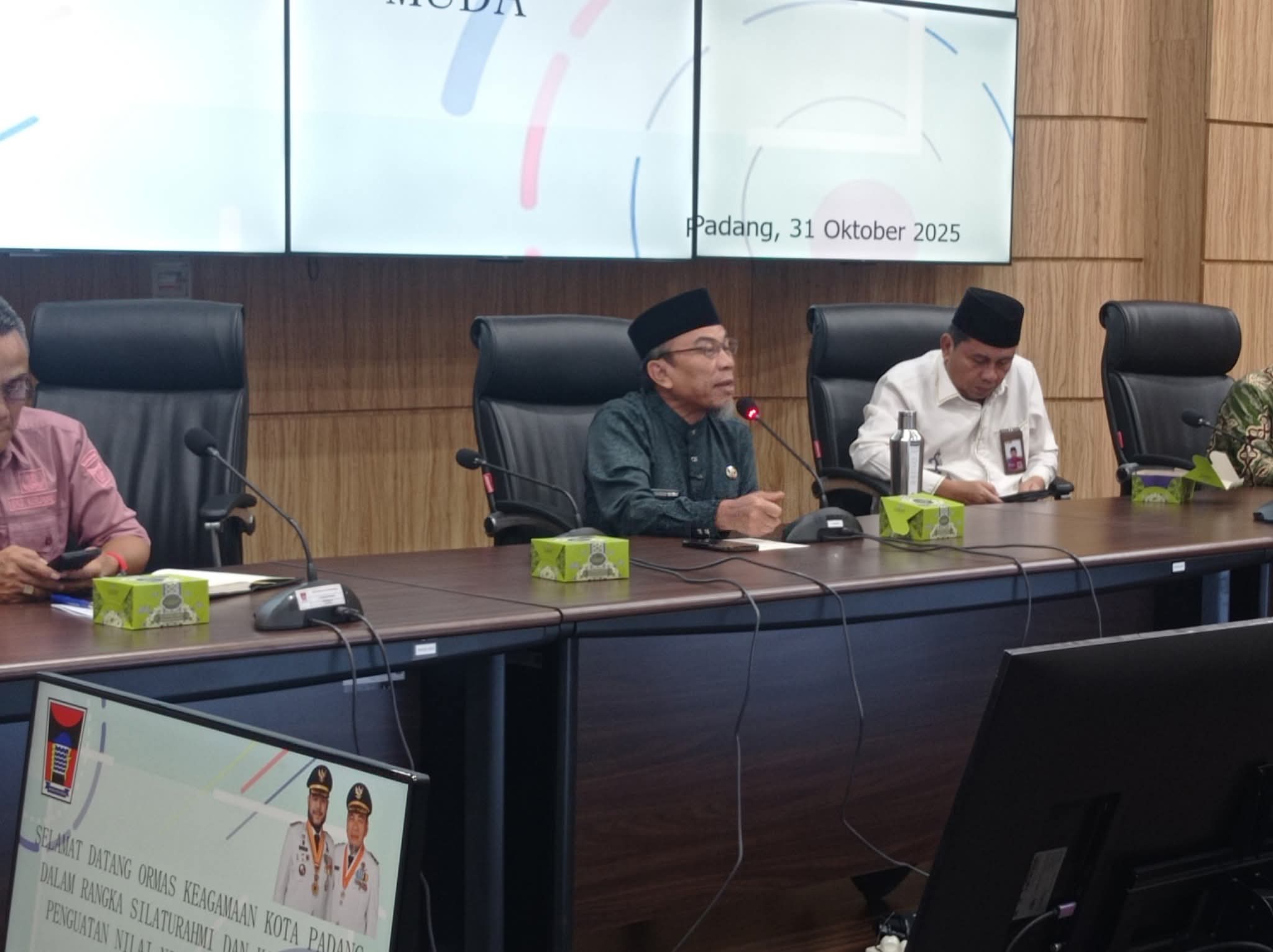 Komitmen tersebut disampaikan dalam kegiatan Pertemuan Ormas Keagamaan Kota Padang yang digelar dalam rangka silaturahmi dan kolaborasi penguatan nilai keagamaan bagi generasi muda di Ruang Bagindo Aziz Chan, Balai Kota Padang, Jumat (31/10/2025).