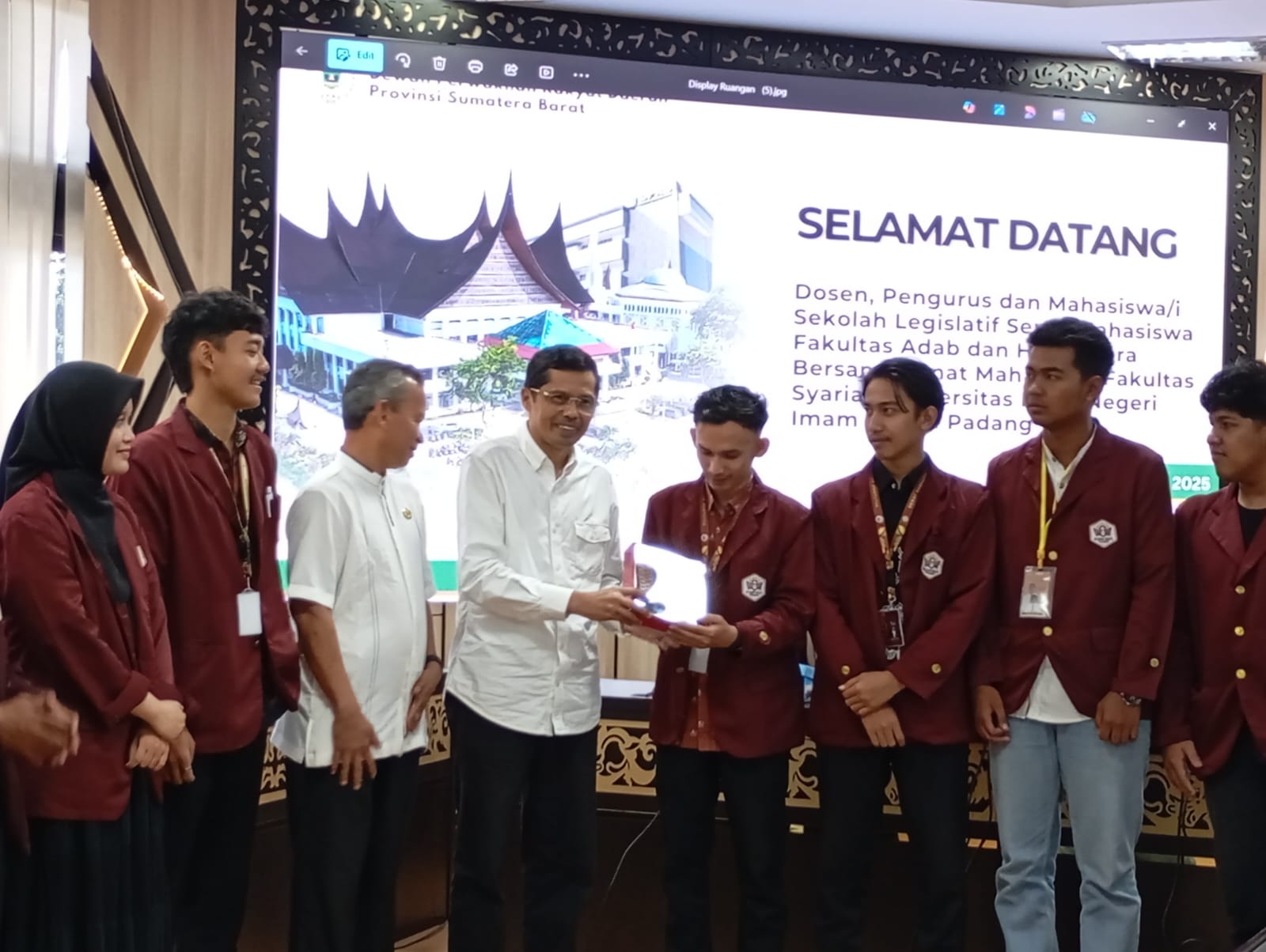 Andalas Time,Padang – Dewan Perwakilan Rakyat Daerah (DPRD) Provinsi Sumatera Barat (DPRD Sumbar) menerima kunjungan puluhan mahasiswa/mahasiswa Fakultas Adab dan Humaniora serta Fakultas Syari’ah UIN Imam Bonjol Padang, dalam rangka Sekolah Legislatif, Jumat (07/11/2025) di ruang sidang khusus 1 kantor DPRD Sumbar.