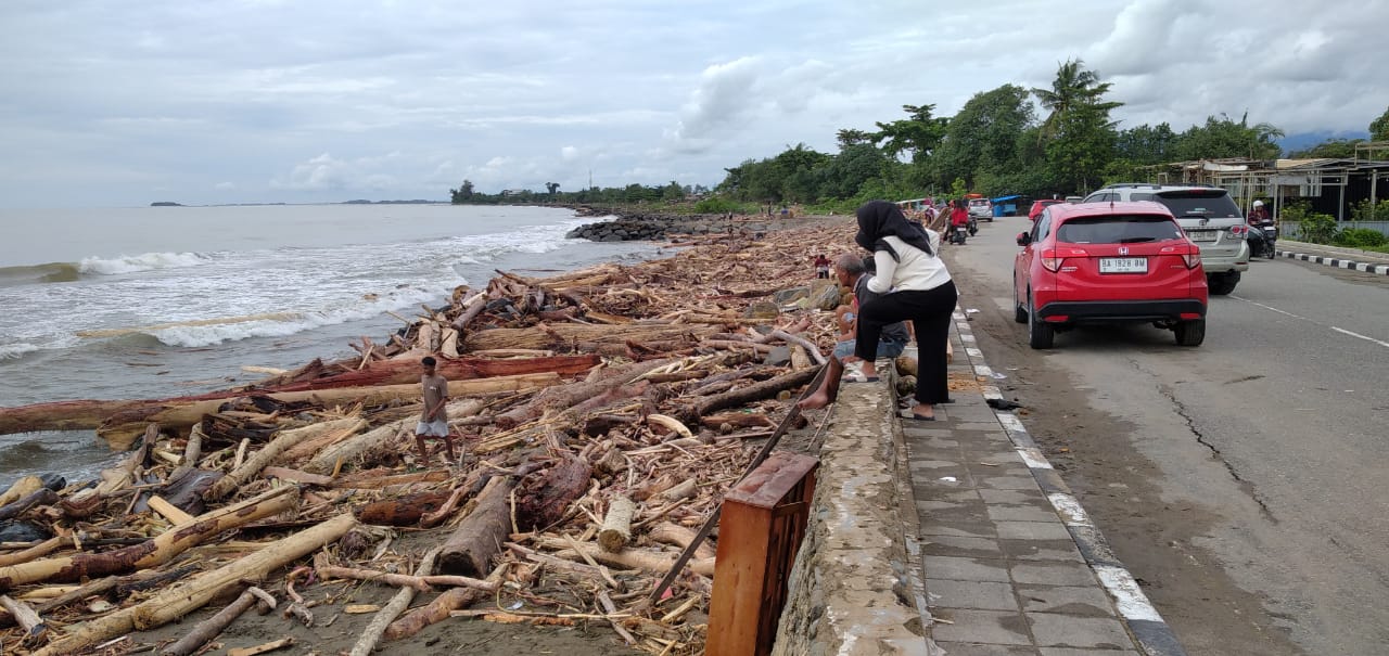 Barang bukti kayu gelondongan, baik yang tumbang dihantam banjir dan sisa penebangan, mempertontonkan diri kepada khalayak di sepanjang pantai di Padang. Bahkan ada warga yang mengaku, sudah puluhan tahun dia hidup, baru melihat tumpukan kayu sebanyak itu di pantai, pada Kamis dan Jumat kemarin.