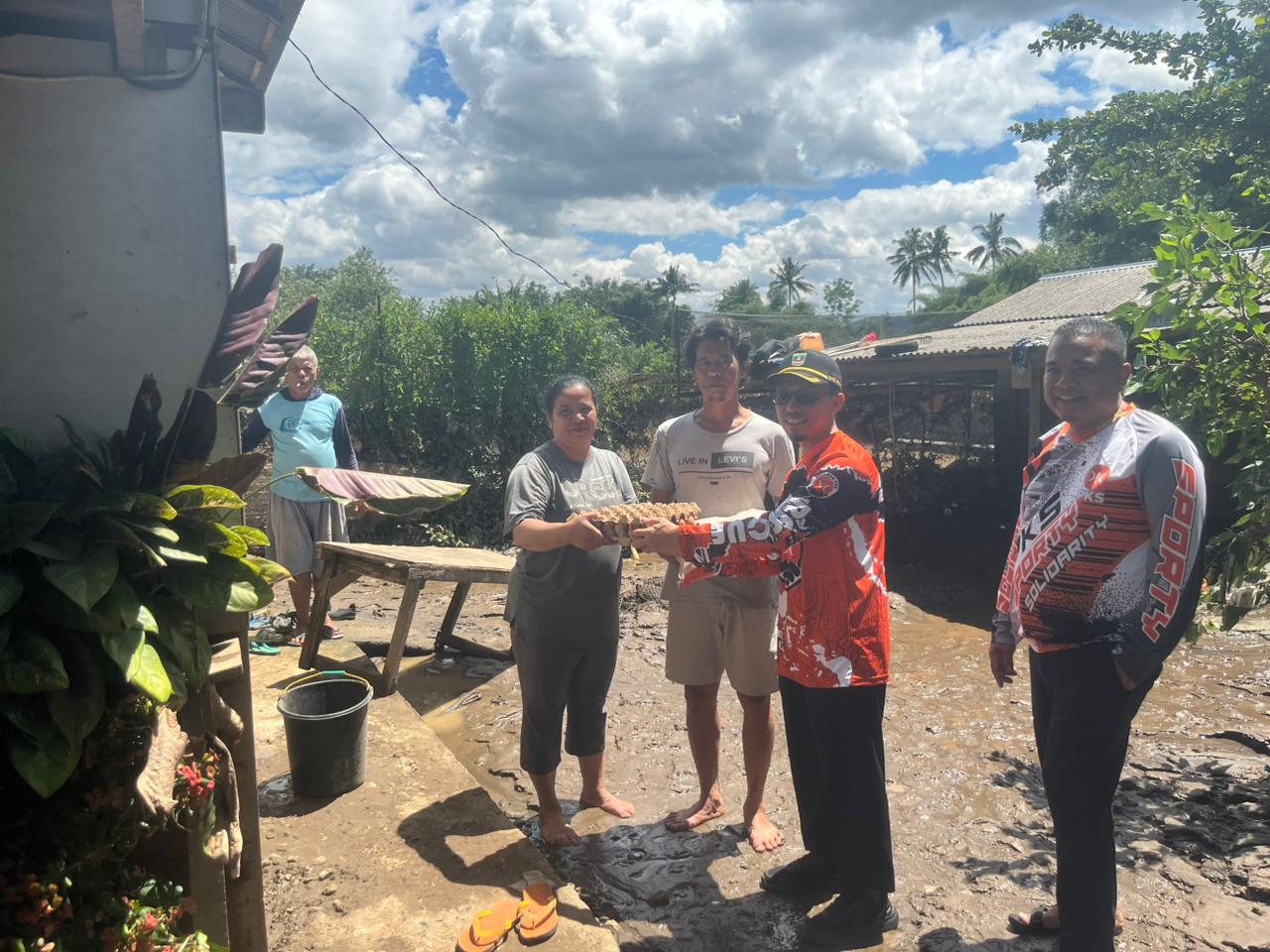 Setibanya di lokasi, Irsyad Safar mendapati kondisi air sudah surut. Meski demikian, sisa lumpur masih tampak menggenangi pekarangan dan sebagian area rumah Pak Datuak Adia, menandakan tingginya debit air saat peristiwa banjir terjadi.