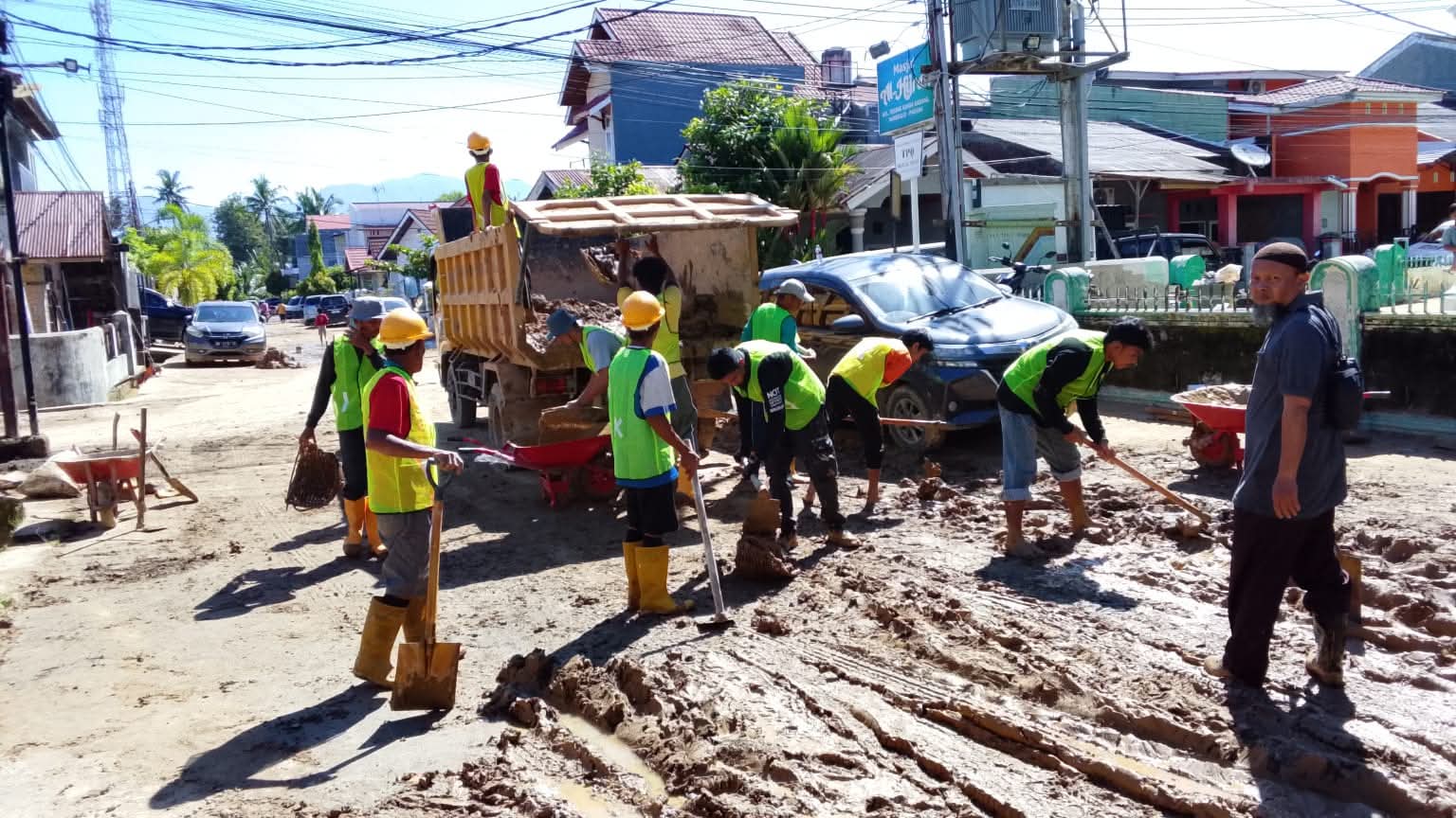 “Banyak sedimen yang masuk ke rumah warga dan tidak mungkin diambil dengan alat berat. Karena itu, selain alat, kami juga menurunkan tenaga manual sebanyak 100 orang,” ungkap Tri.
