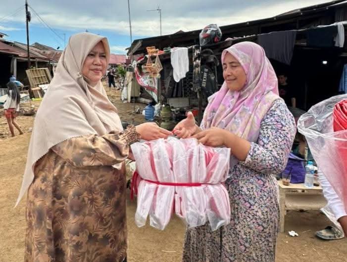 Andalas Time,Padang – Istri Wakil Wali Kota Padang, Ny Srihayati Maigus Nasir meneteskan air mata saat melihat warga terdampak bencana banjir di Kecamatan Nanggalo, Senin (1/12/2025). Matanya berair melihat warga di Kompleks Griya Permata I dan II, Kelurahan Tabing Banda Gadang.