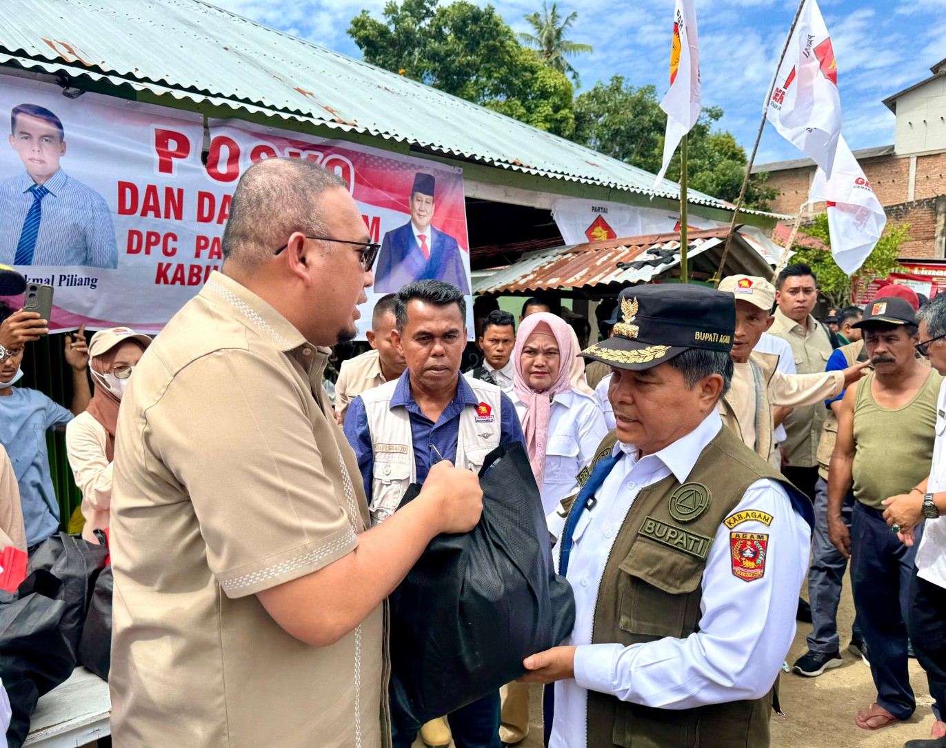 Di lokasi tersebut, Andre menyerahkan 5.000 paket bantuan melalui posko DPC Gerindra Agam yang diterima langsung oleh Bupati Agam, Benni Warlis. Sebanyak 4.000 paket dialokasikan untuk masyarakat Palembayan, sementara 1.000 paket lainnya diperuntukkan bagi warga Maninjau, Kecamatan Tanjung Raya.