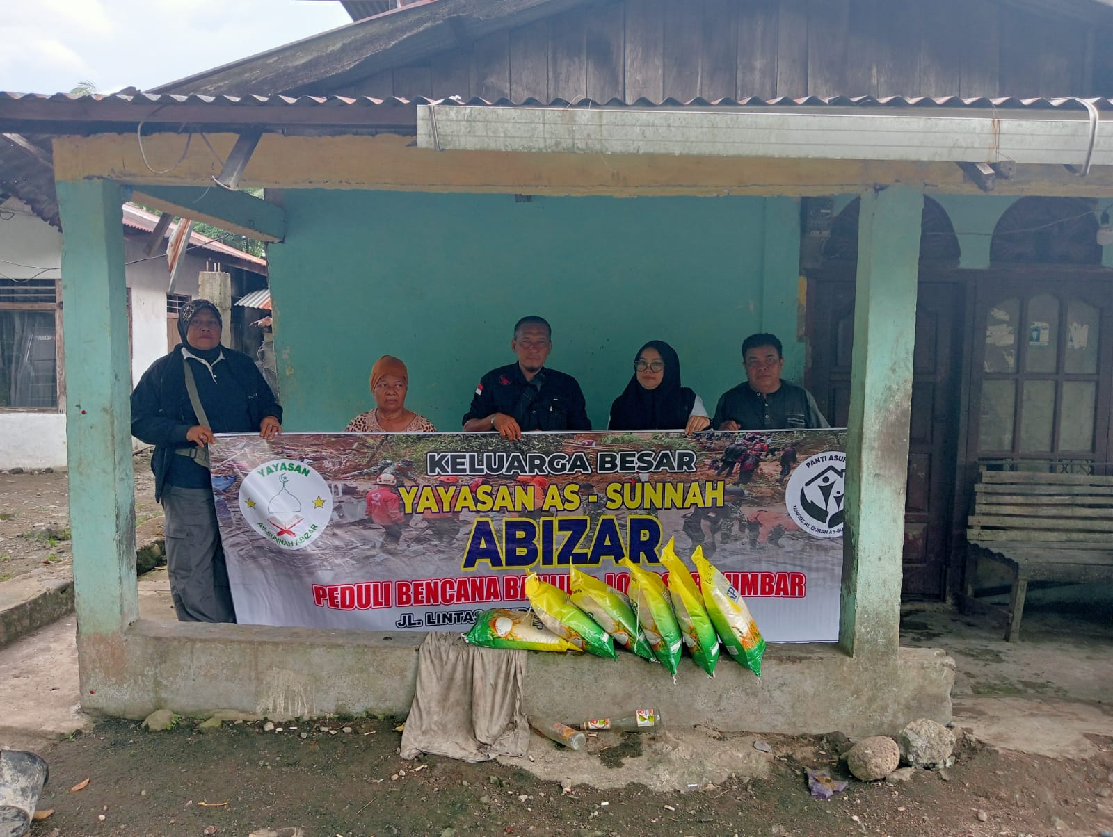 sejumlah relawan yayasan menyerahkan paket bantuan berupa beras kemasan yang diserahkan langsung kepada warga di salah satu rumah terdampak. Aksi sosial ini dilakukan sebagai bentuk kepedulian dan solidaritas Yayasan As-Sunnah Abizar terhadap masyarakat yang terdampak pascabencana banjir dan longsor