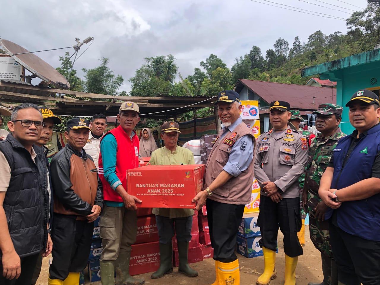 Pada kesempatan tersebut, Gubernur Sumbar juga menyerahkan bantuan kebutuhan dasar kepada warga terdampak berupa makanan siap saji, lauk pauk, makanan bergizi untuk anak, family kit, air mineral, mi instan, selimut, dan kasur. Penyerahan bantuan berlangsung di Kantor Wali Nagari Pagadih dan disaksikan unsur pemerintah daerah serta warga setempat.