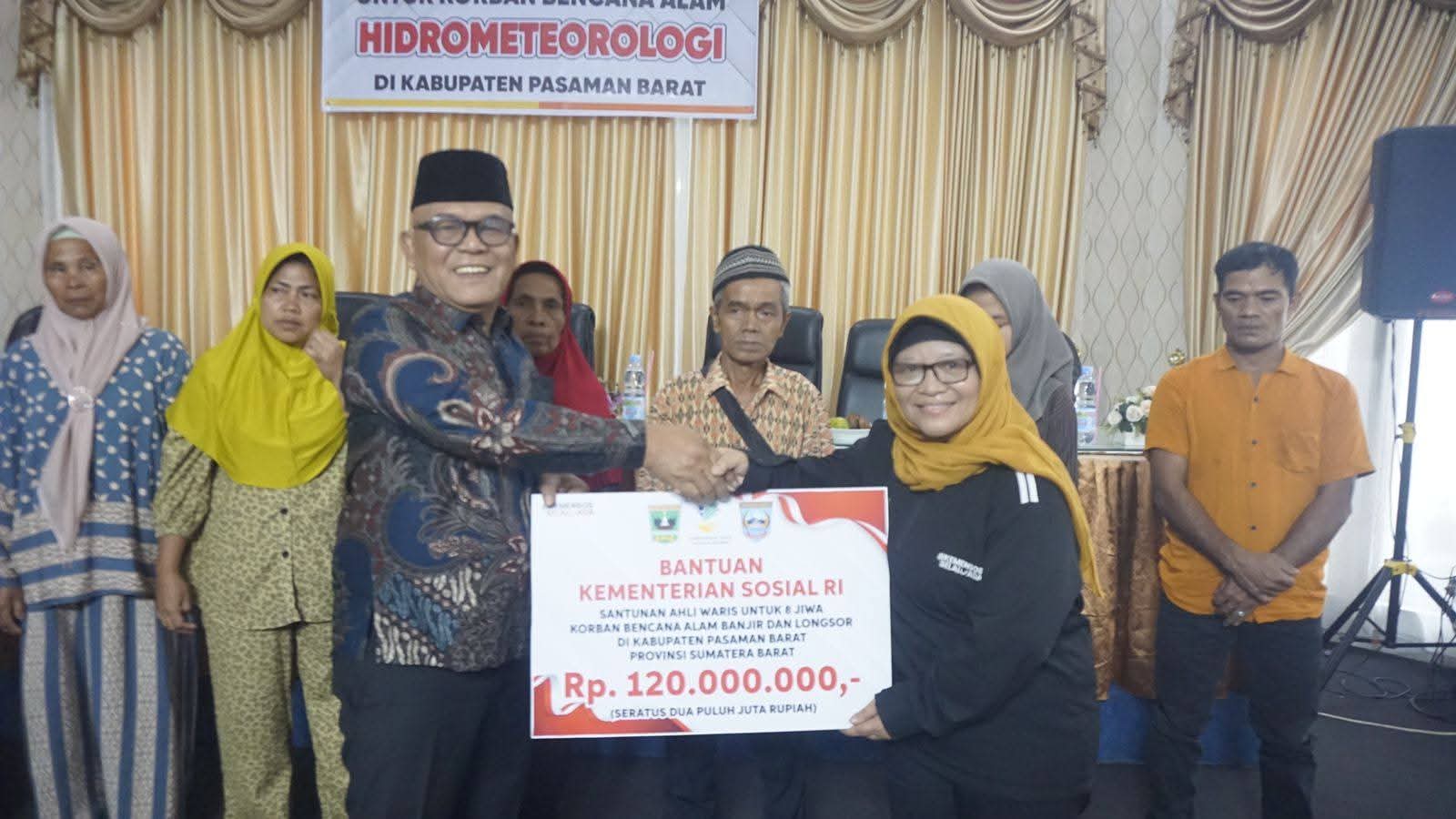 “Di Kabupaten Pasaman Barat tercatat delapan korban meninggal dunia akibat bencana hidrometeorologi. Total santunan yang disalurkan sebesar Rp120 juta, disertai enam paket bantuan sembako,” jelasnya.