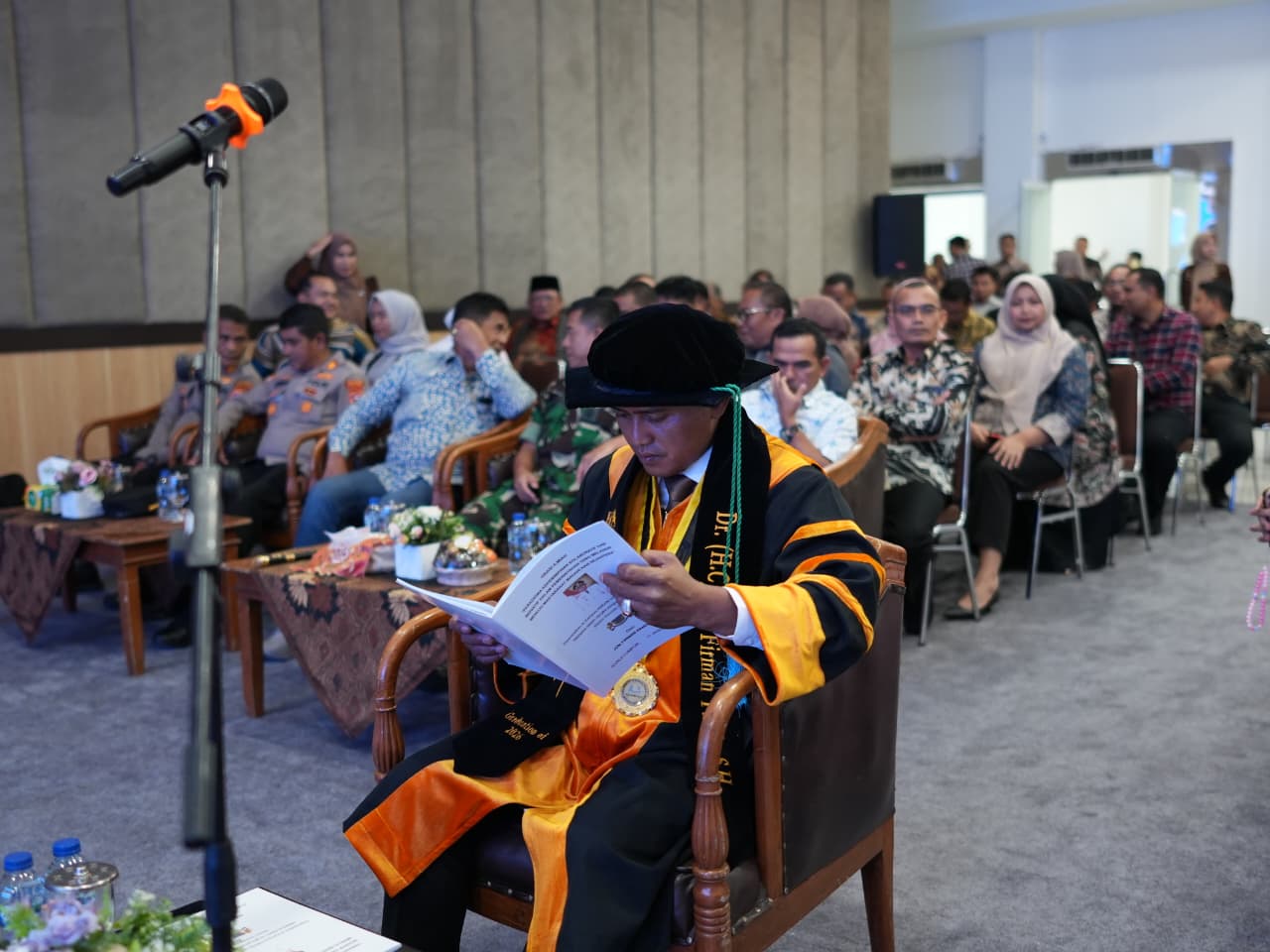 Dalam prosesi wisuda tersebut, Bupati Jon Firman Pandu menyampaikan orasi ilmiah mengenai “Paradigma Kepemimpinan Kolaboratif dan Inovatif dalam Pemerintahan yang melayani Menuju Masyarakat Madani Nan Sejahtera”. Sebuah paradigma dimana saat ini pemimpin bukan sebagai pusat kekuasaan, melainkan arsitek ekosistem, yang membangun ruang dialog, mengorkestrasi kepentingan dan menyatukan energi kolektif pemerintah, masyarakat, dunia usaha, akademisi maupun komunitas lokal.