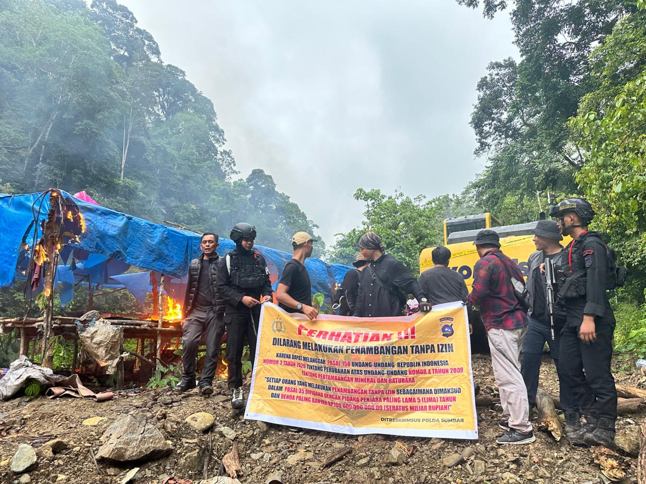 “Di lokasi ini kami menemukan satu unit alat berat yang selanjutnya akan digunakan sebagai bahan penyelidikan. Polri mendukung Pemprov Sumbar dalam mendorong penetapan WPR agar masyarakat dapat beraktivitas secara legal, aman, dan lingkungan tetap terjaga,” ujarnya.