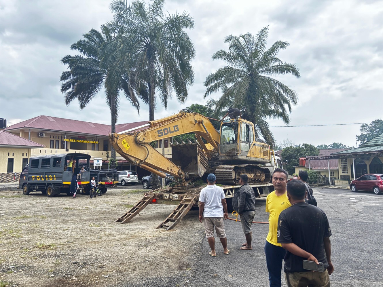 Kapolres menjelaskan, petugas menyita barang bukti berupa satu unit alat berat (excavator) PC 210F merk SDLG warna Kuning, dua buah alat dulang emas terbuat dari kayu dan tiga lembar karpet warna hijau terbuat dari plastik.
