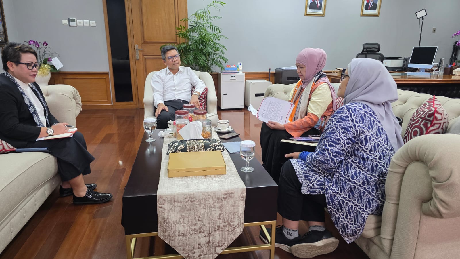 Pertemuan hangat tersebut diakhiri dengan foto bersama sambil menyerah kan karya delegasi IMLF kepada sekjen Kemenlu dan Direktur Diplomasi publik yang juga menyerahkan buku karyanya sendiri yang unik berjudul ResoNance (**)