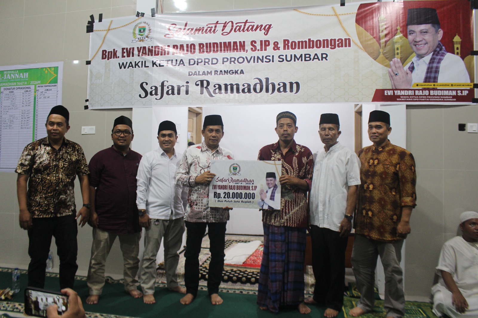 Andalas Time,Padang – Wakil Ketua DPRD Sumbar, Evi Yandri Rajo Budiman, menegaskan komitmennya memberantas narkoba melalui pendekatan rehabilitasi dan penguatan peran masyarakat. Ia menyampaikan pesan tersebut dalam rangkaian Safari Ramadhan 1447 Hijriah di Mushalla Al-Jannah, Kelurahan Limau Manis Selatan, Kecamatan Pauh, Sabtu (21/2/2026).