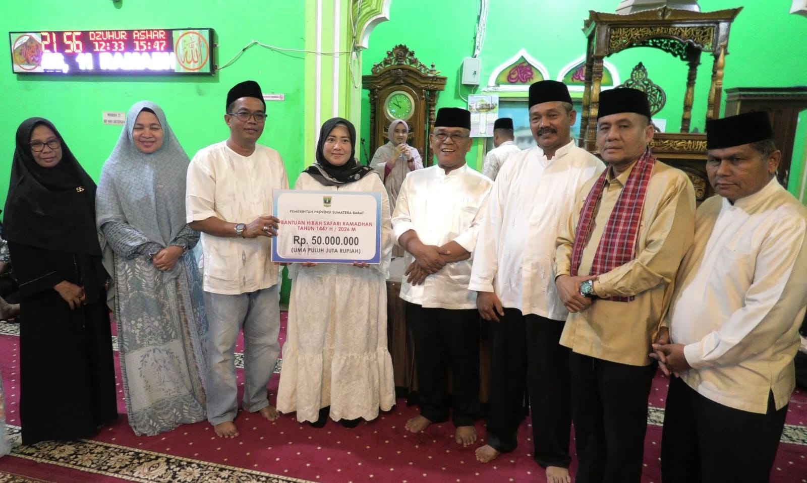 Dalam kesempatan tersebut, Pemerintah Provinsi Sumbar melalui TSR menyerahkan bantuan sebesar Rp50 juta untuk pembangunan masjid, serta mushaf Al-Qur’an. Selain itu, Universitas Baiturrahmah turut memberikan bantuan sebesar Rp2,5 juta.