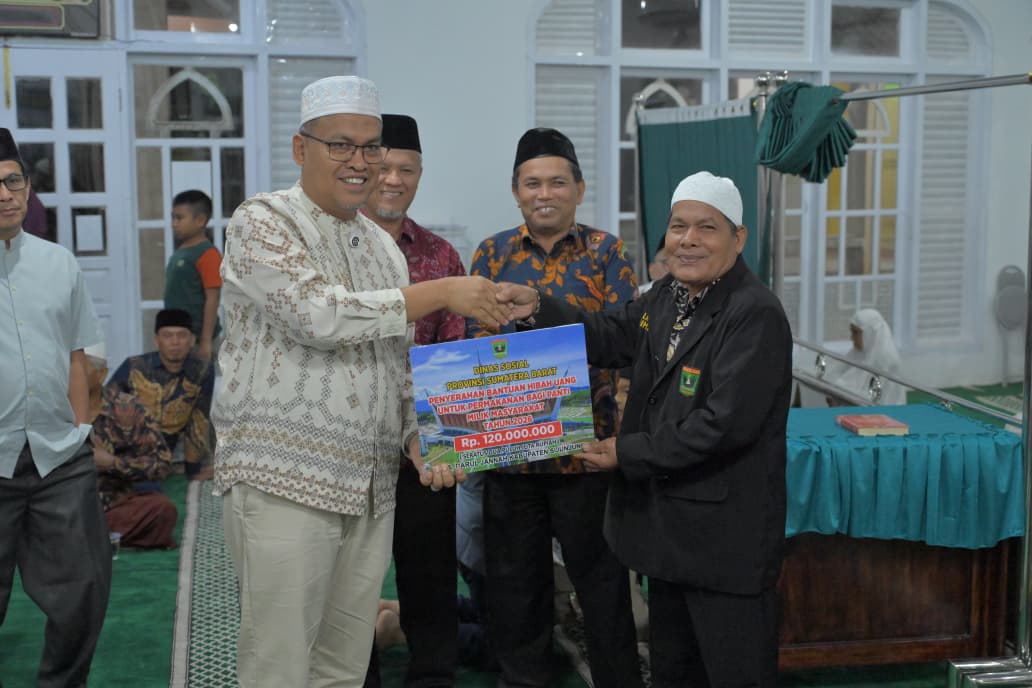 • Bantuan Rp50 juta untuk Masjid An-Nur Wisma Indah Muaro Gambok beserta wakaf Al-Qur’an dari ASN Provinsi Sumbar;