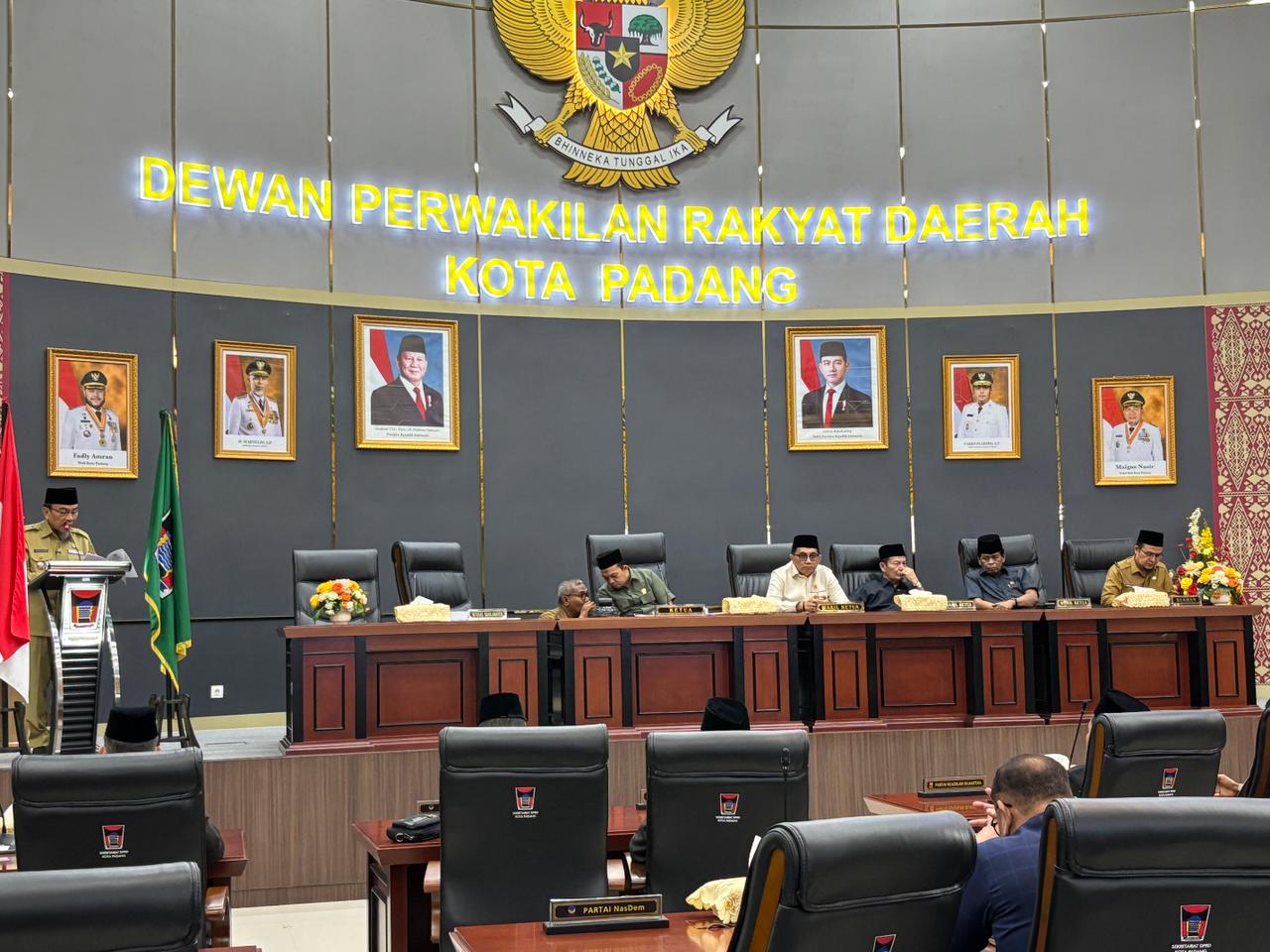 Rapat Paripurna yang berlangsung di Ruang Sidang Utama Gedung DPRD Kota Padang itu dipimpin oleh Ketua DPRD Kota Padang, H. Muharlion. Kemudian didampingi Wakil Ketua, Mastilizal Aye, Osman Ayub dan Jupri serta Sekretaris DPRD Kota Padang, Hendrizal Azhar dan segenap anggota dewan.