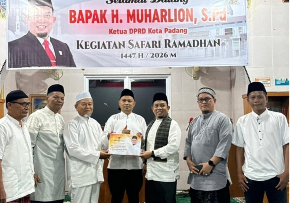 Andalas Time,Padang – Ketua DPRD Kota Padang, H. Muharlion, S.Pd., melaksanakan kegiatan Safari Ramadhan 1447 H di Masjid Darussalam, Kelurahan Batang Kabung Ganting, Kecamatan Koto Tangah, pada Minggu (22/2/2026). Kehadiran pimpinan legislatif ini disambut hangat oleh jemaah dan pengurus masjid dalam suasana penuh kekeluargaan pasca pelaksanaan shalat tarawih berjamaah.
