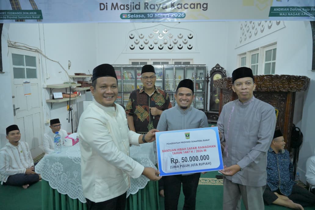 Andalas Time,Kab.Solok — Rangkaian kegiatan Safari Ramadan yang dipimpin Sekretaris Daerah Provinsi Sumatera Barat (Sekdaprov Sumbar), Arry Yuswandi, resmi berakhir di Masjid Raya Kacang, Kecamatan X Koto Singkarak, Kabupaten Solok, Selasa (10/3/2026). Kunjungan tersebut menjadi penutup dari rangkaian safari Ramadan tim yang dipimpinnya tahun ini.