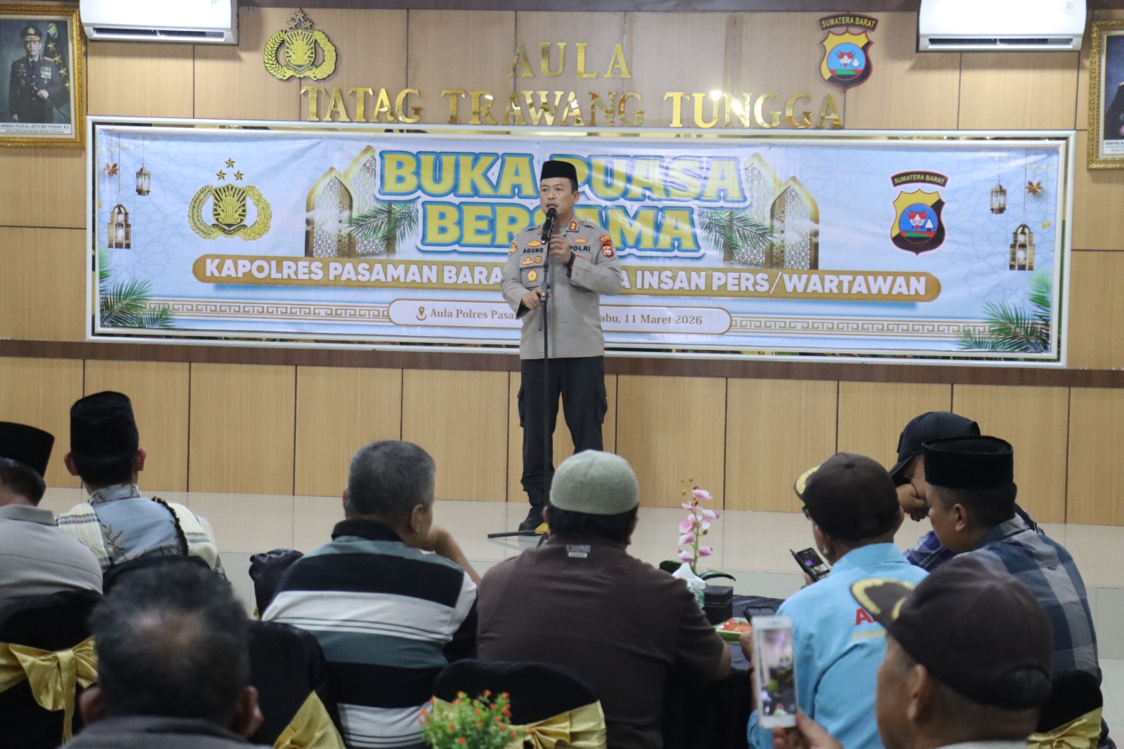 Andalas Time,Pasaman Barat – Kepolisian Resor (Polres) Pasaman Barat, Sumatera Barat (Sumbar), menggelar acara buka puasa bersama para wartawan se-Pasaman Barat, di Aula Tatag Trawang Tungga Mapolres setempat, Rabu (11/3/2026).