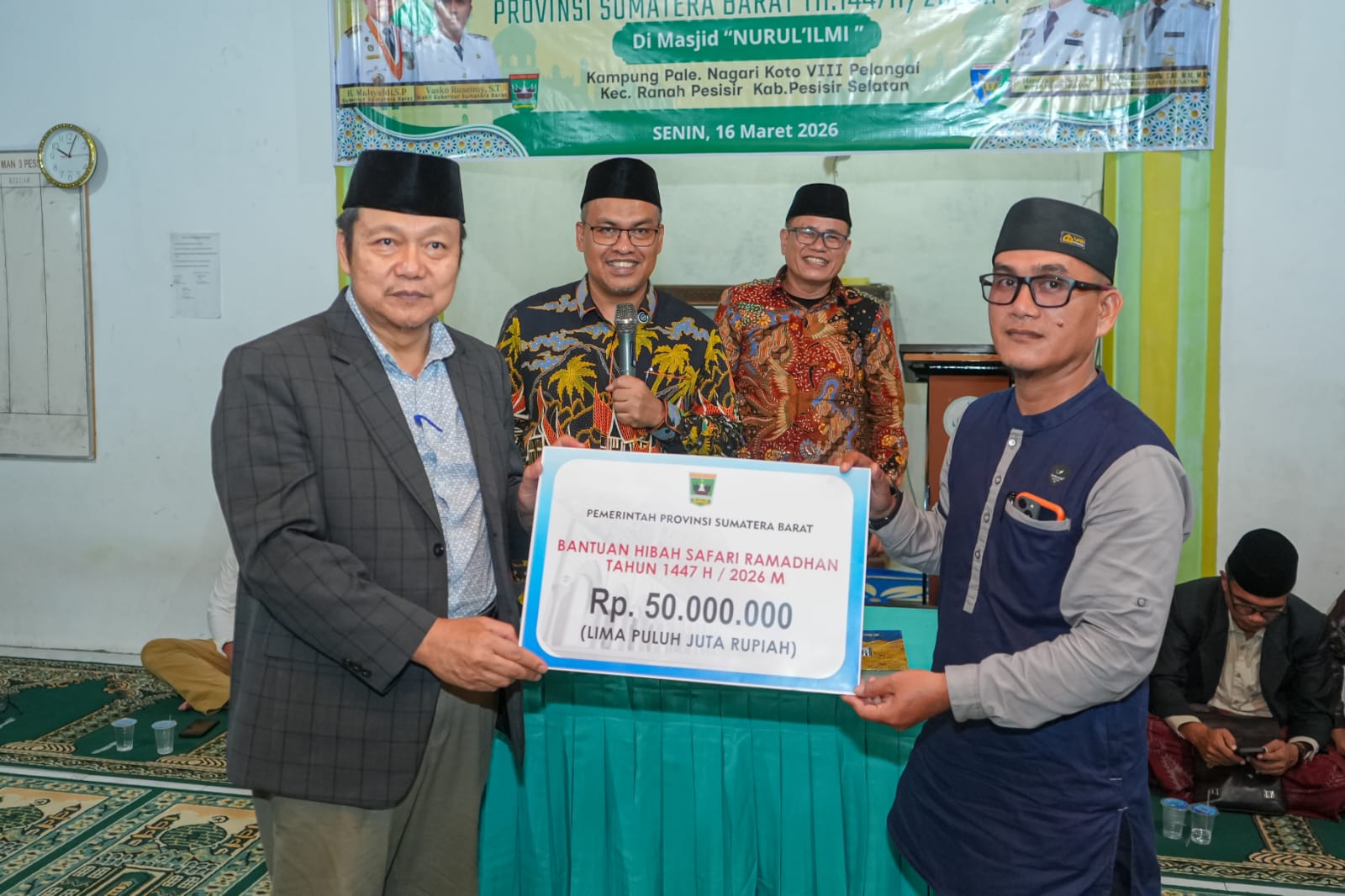 Andalas Time,Pessel — Sekretaris Daerah Provinsi Sumatera Barat (Sekdaprov Sumbar), Arry Yuswandi memimpin Tim Safari Ramadan Pemerintah Provinsi Sumbar berkunjung ke Masjid Nurul Ilmi, Kampung Pale, Nagari Koto VIII Pelangai, Kecamatan Ranah Pesisir, Kabupaten Pesisir Selatan, Senin (16/3/2026).