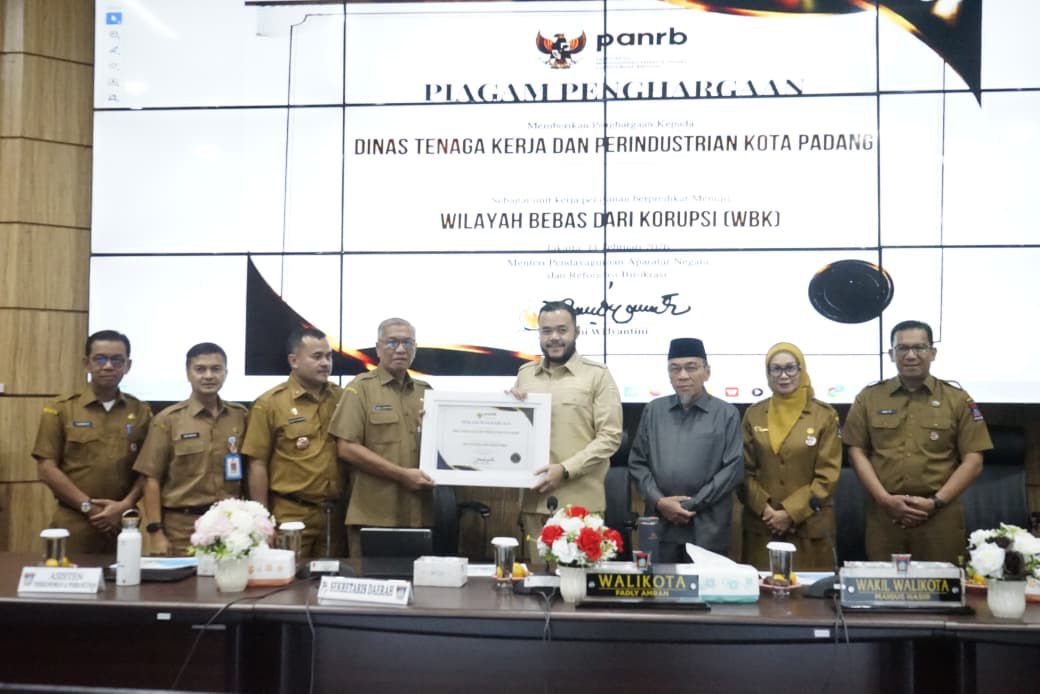 Kegiatan diawali dengan pemberian penghargaan kepada Dinas Tenaga Kerja dan Perindustrian Kota Padang dari Kementerian Pendayagunaan Aparatur Negara dan Reformasi Birokrasi (Menpan RB) sebagai unit kerja berpredikat Wilayah Bebas dari Korupsi (WBK).
