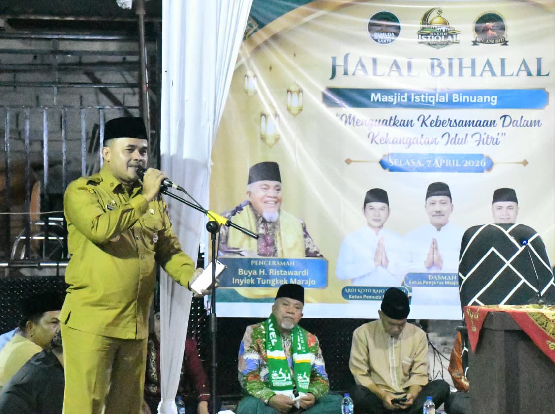 Andalas Time,Padang – Mewakili Wali Kota Padang, Penjabat (Pj) Sekretaris Daerah Kota Padang, Raju Minropa, menghadiri acara Halal Bihalal 1447 Hijriah yang digelar di pelataran Masjid Istiqlal Binuang, Kelurahan Binuang Kampung Dalam, Kecamatan Pauh, Selasa (7/4/2026) malam.