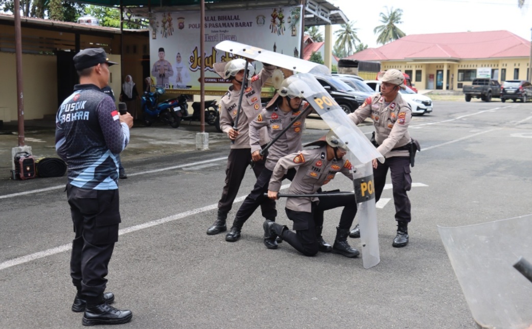 Personel Polres Pasaman Barat juga dilatih untuk mampu membedakan pendekatan yang digunakan dalam setiap situasi, termasuk menjalin komunikasi yang efektif dengan koordinator aksi agar situasi dapat dikendalikan.