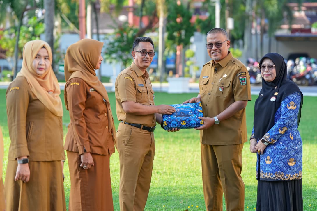 Kegiatan tersebut ditandai dengan penyerahan cenderamata oleh Gubernur Sumbar yang diwakili Sekretaris Daerah (Sekda), Arry Yuswandi kepada perwakilan ASN calon jemaah haji.